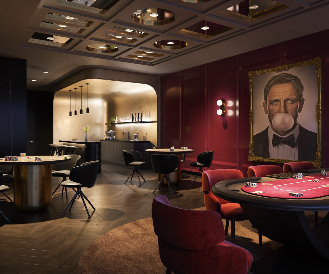 2nd Level: Indoor amenity space featuring indoor/outdoor fitness featuring cardio equipment by Freemotion Fitness, free weights area, exercise multi-purpose room and massage room. A Wi-Fi co-working space with meeting rooms, James Bond inspired games rooms, outdoor lounge with ping pong and foosball